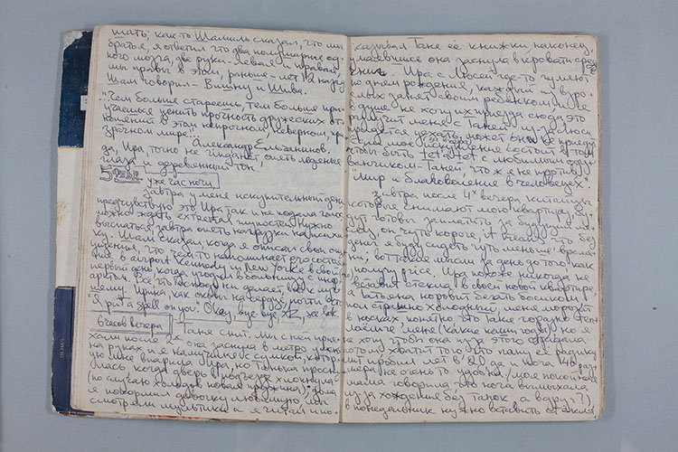 Azazello’s notes from this era do not make for happy reading. Mostly it is his fighting with Irina, his snatched moments with Tania, which leave him with even more worries, the fact that he has no home, which gets him down. He seems to get beaten up by people—he speaks of a broken head at some point—but he also fails to walk away from the drugs, detailing a bewildering array of things he was consuming—or sometimes proudly refraining from (but never for long). While his penniless existence, his dependence on shady middlemen to rent his flat, and his decline into a world of violence speak volumes about what the 1990s did to most Russian citizens, he rarely, if ever, comments on politics. He thinks big. He reads Gumilev like many of his contemporaries. Or he thinks small. He muses on Moscow, observing how much the city of his youth has changed for him and, implicitly, for everybody.